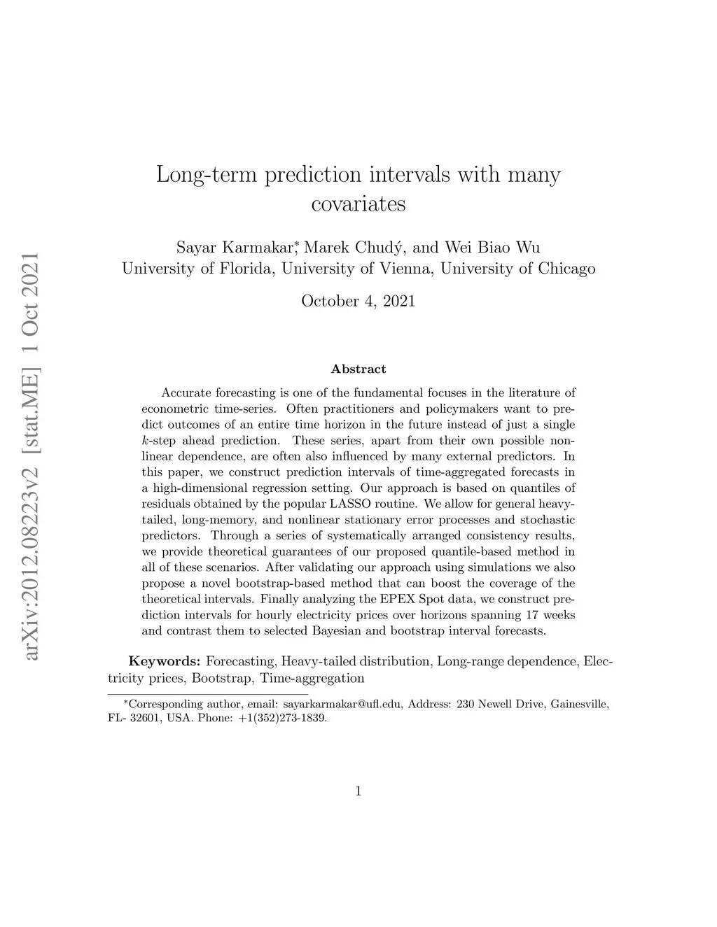 Long-term prediction intervals with many covariates
