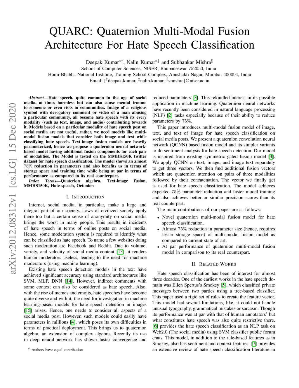 QUARC: Quaternion Multi-Modal Fusion Architecture For Hate Speech
