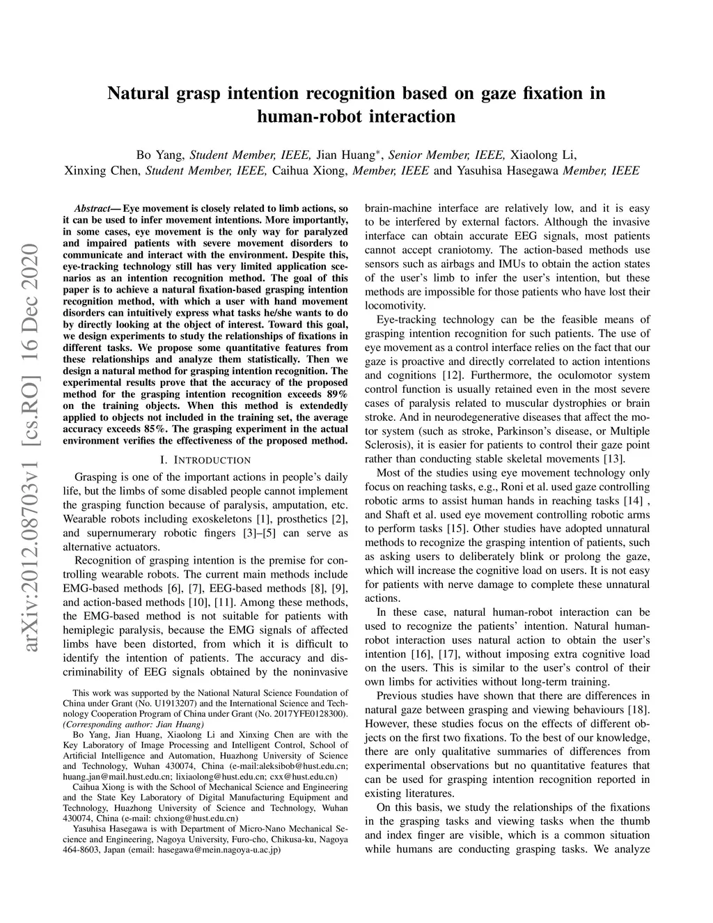 Eye movement is closely related to limb actions, so it can be used to infer movement intentions. More importantly, in some cases, eye movement is the only way for paralyzed and impaired patients with severe movement disorders to communicate and interact with the environment. Despite this, eye-tracking technology still has very limited application scenarios as an intention recognition method. The goal of this paper is to achieve a natural fixation-based grasping intention recognition method, with which a user with hand movement disorders can intuitively express what tasks he/she wants to do by directly looking at the object of interest. Toward this goal, we design experiments to study the relationships of fixations in different tasks. We propose some quantitative features from these relationships and analyze them statistically. Then we design a natural method for grasping intention recognition. The experimental results prove that the accuracy of the proposed method for the grasping intention recognition exceeds 89\% on the training objects. When this method is extendedly applied to objects not included in the training set, the average accuracy exceeds 85\%. The grasping experiment in the actual environment verifies the effectiveness of the proposed method.
