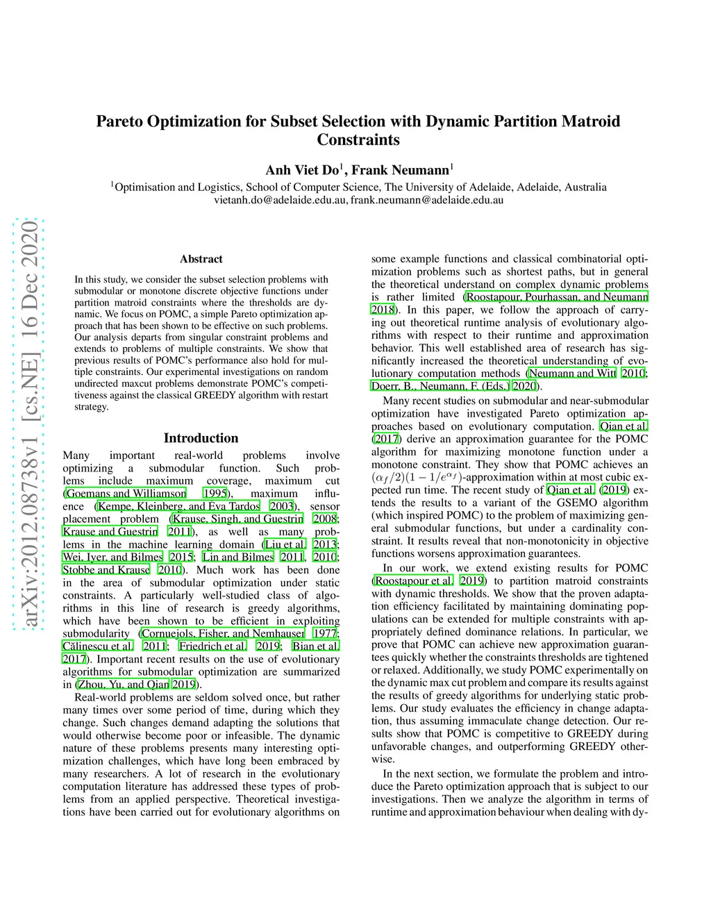 In this study, we consider the subset selection problems with submodular or monotone discrete objective functions under partition matroid constraints where the thresholds are dynamic. We focus on POMC, a simple Pareto optimization approach that has been shown to be effective on such problems. Our analysis departs from singular constraint problems and extends to problems of multiple constraints. We show that previous results of POMC's performance also hold for multiple constraints. Our experimental investigations on random undirected maxcut problems demonstrate POMC's competitiveness against the classical GREEDY algorithm with restart strategy.