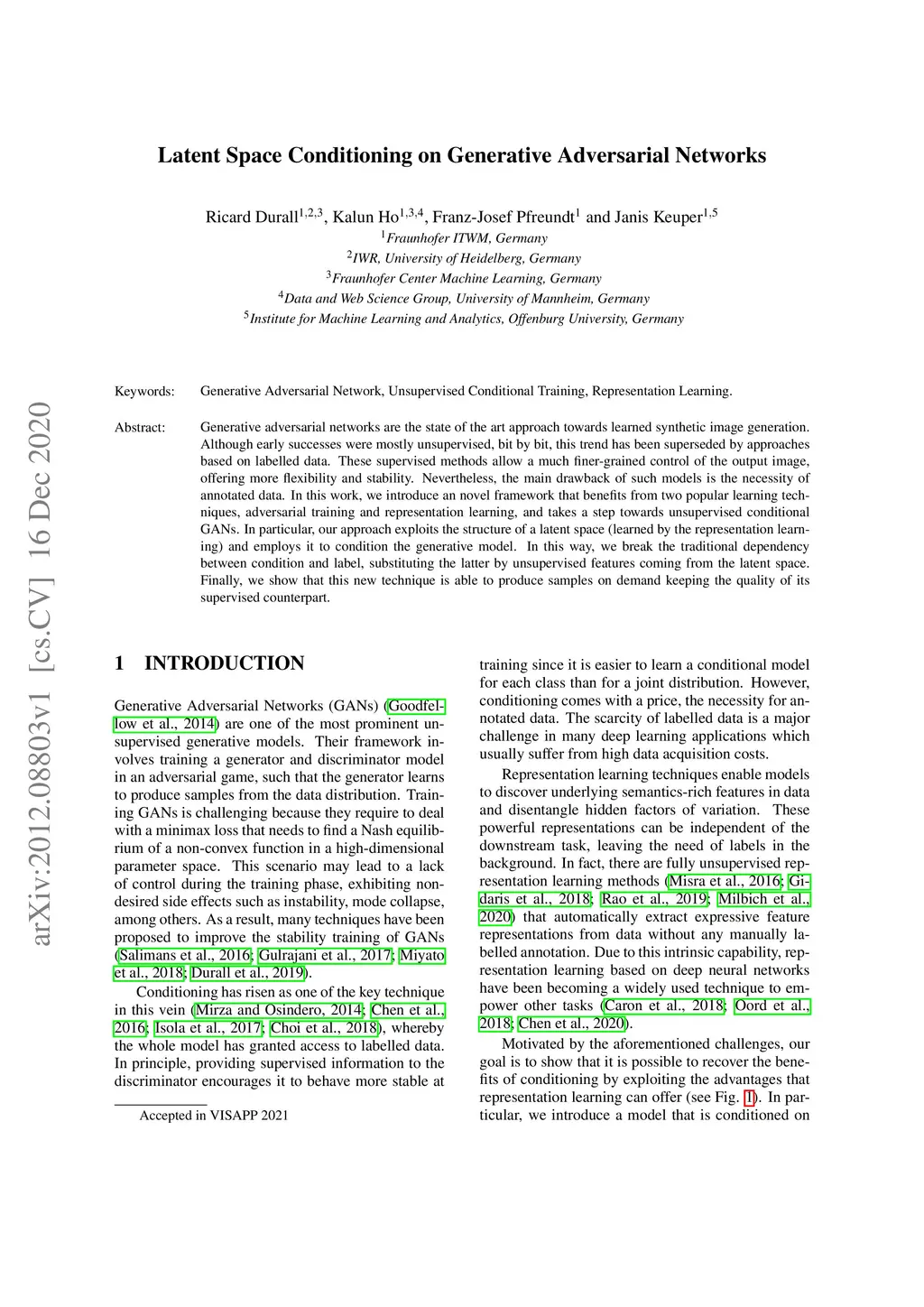 Latent Space Conditioning on Generative Adversarial Networks