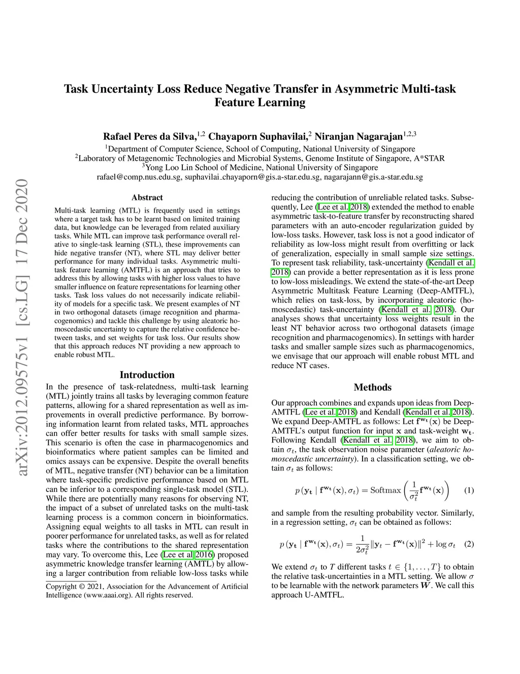 Multi-task learning (MTL) is frequently used in settings where a target task has to be learnt based on limited training data, but knowledge can be leveraged from related auxiliary tasks. While MTL can improve task performance overall relative to single-task learning (STL), these improvements can hide negative transfer (NT), where STL may deliver better performance for many individual tasks. Asymmetric multitask feature learning (AMTFL) is an approach that tries to address this by allowing tasks with higher loss values to have smaller influence on feature representations for learning other tasks. Task loss values do not necessarily indicate reliability of models for a specific task. We present examples of NT in two orthogonal datasets (image recognition and pharmacogenomics) and tackle this challenge by using aleatoric homoscedastic uncertainty to capture the relative confidence between tasks, and set weights for task loss. Our results show that this approach reduces NT providing a new approach to enable robust MTL.