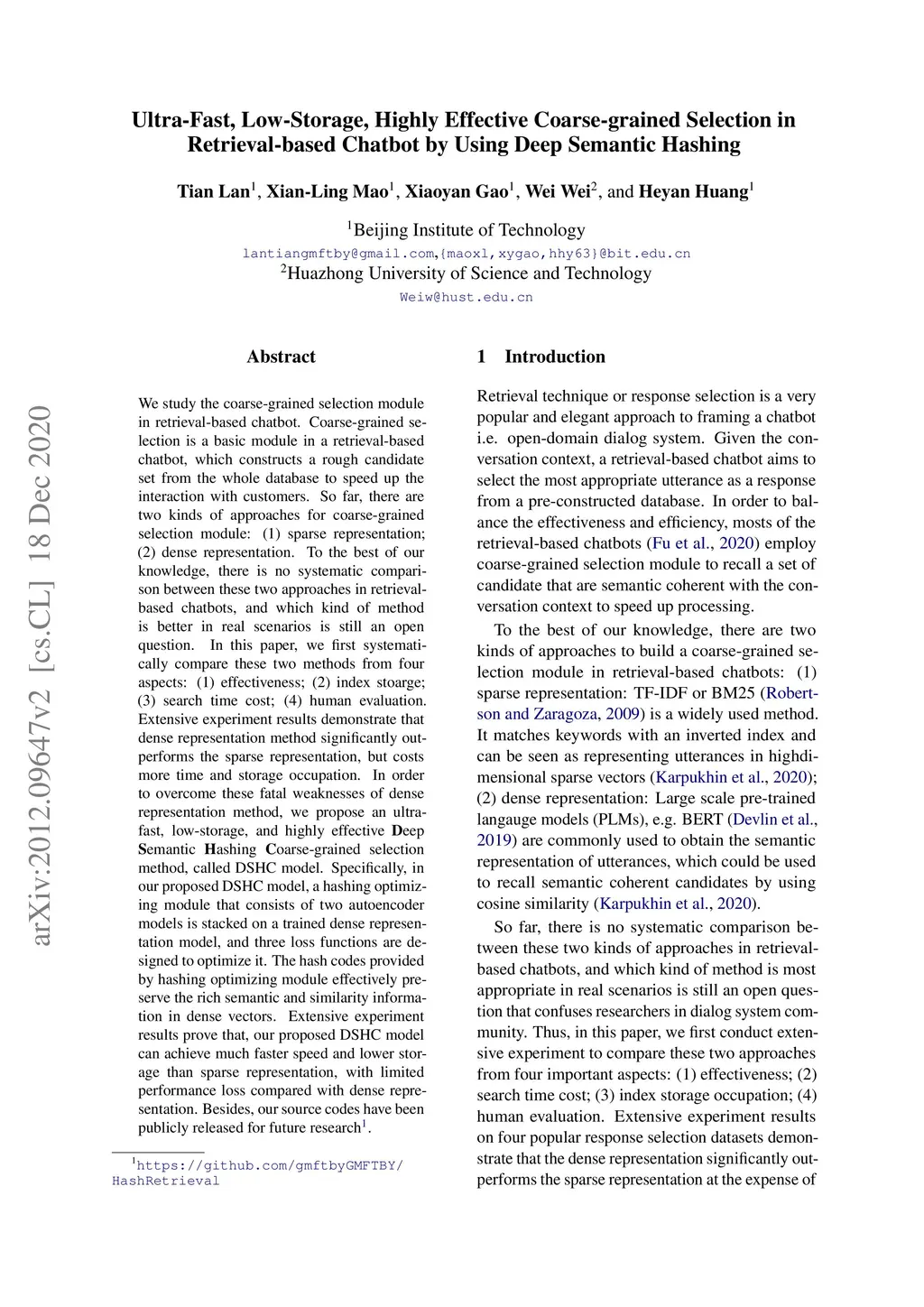 Retrieval-based Chatbot by Using Deep Semantic Hashing
