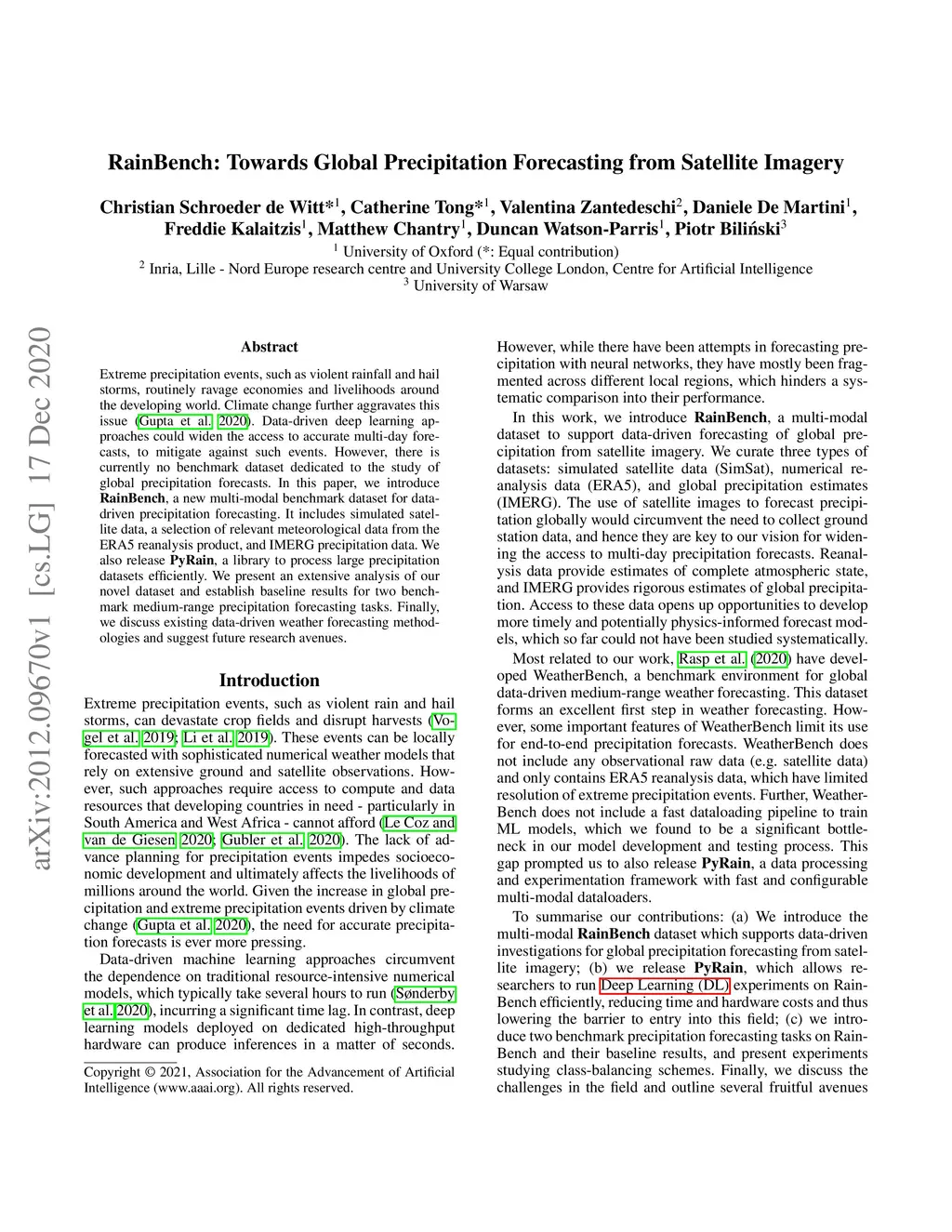RainBench: Towards Global Precipitation Forecasting from Satellite