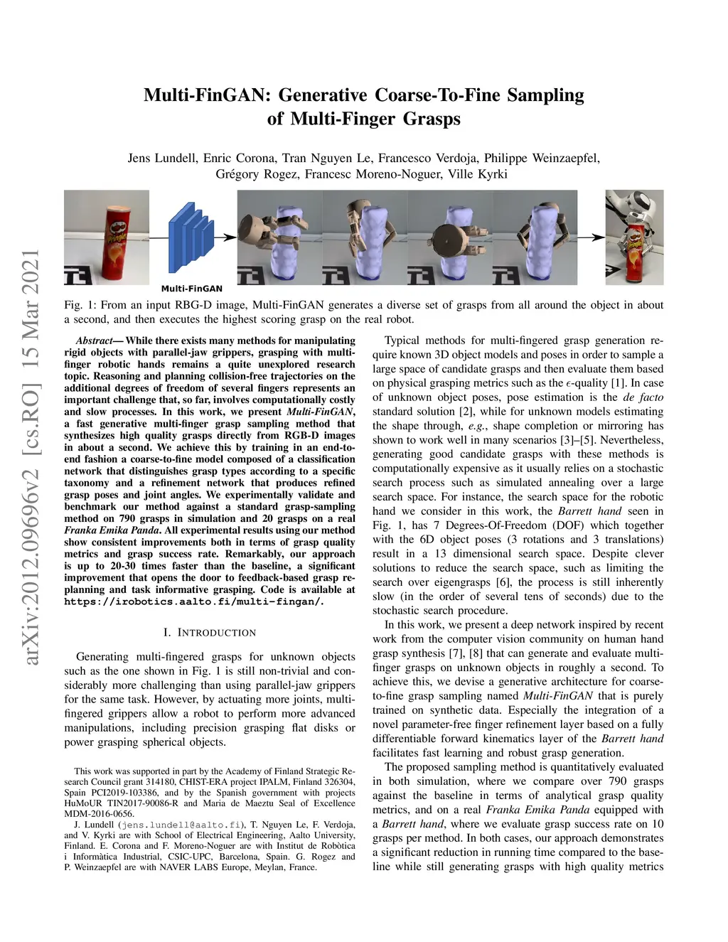 Multi-FinGAN: Generative Coarse-To-Fine Sampling of Multi-Finger Grasps