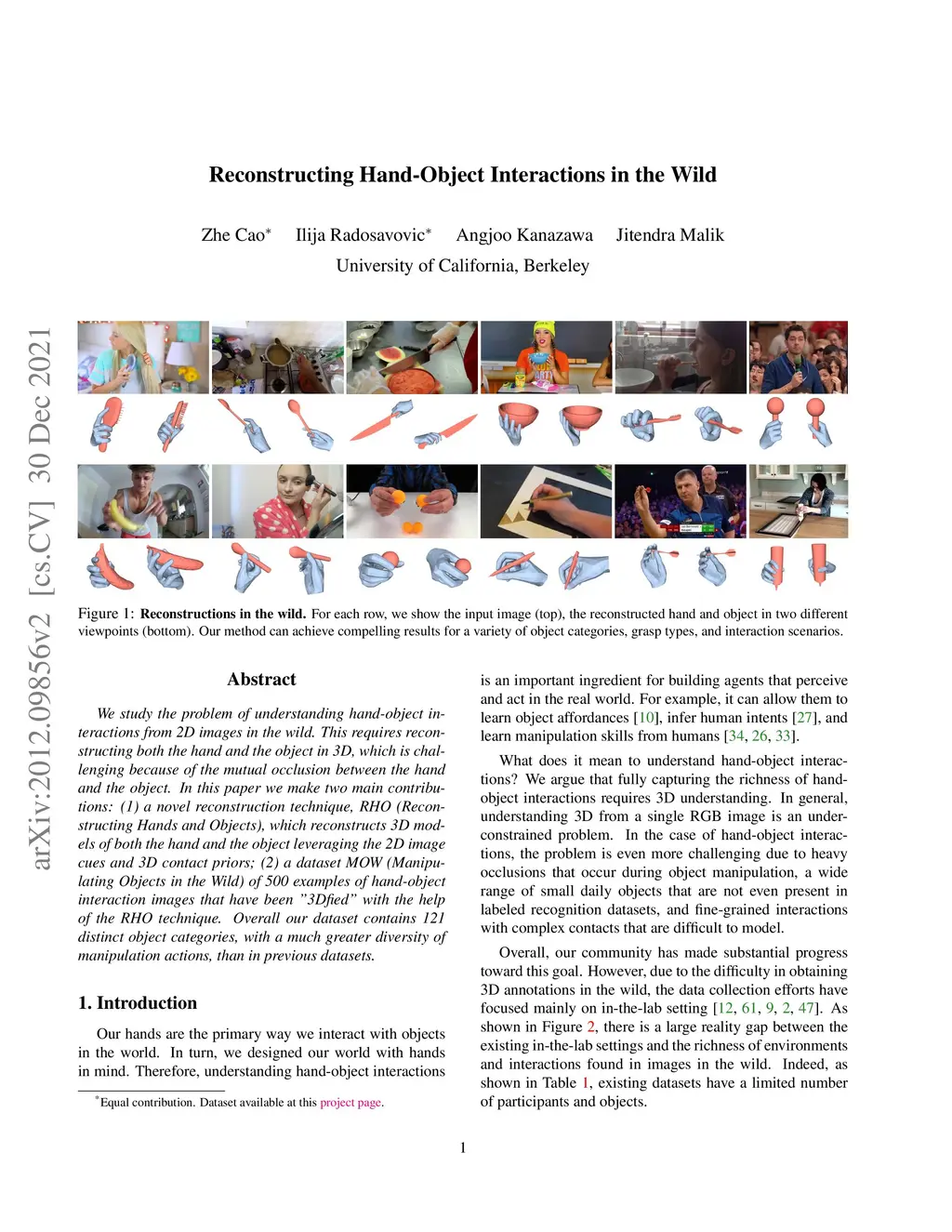 Reconstructing Hand-Object Interactions in the Wild
