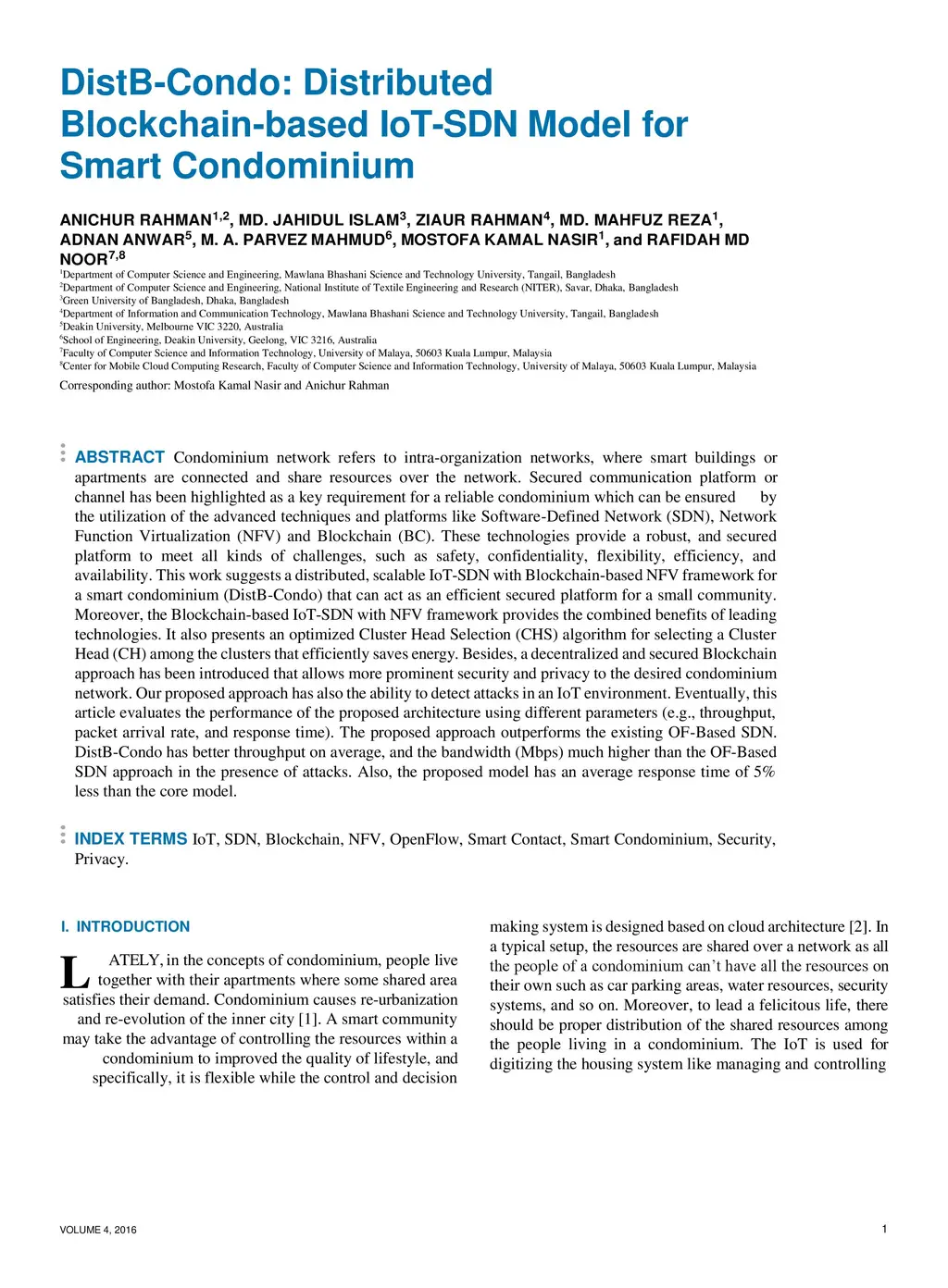DistB-Condo: Distributed Blockchain-based IoT-SDN Model for Smart