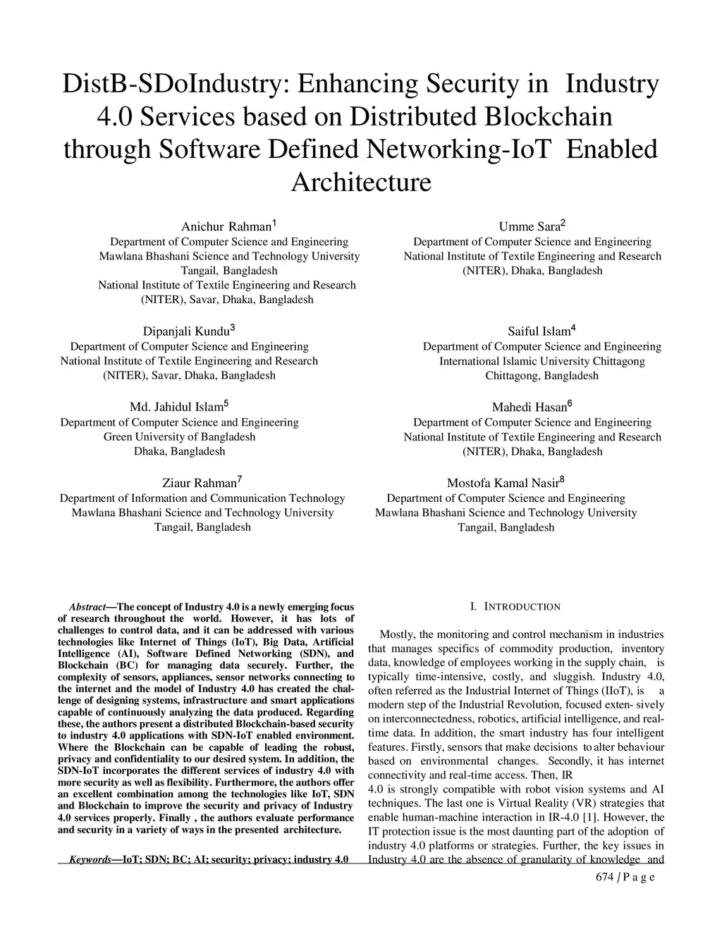 DistB-SDoIndustry: Enhancing Security in Industry 4.0 Services based on
