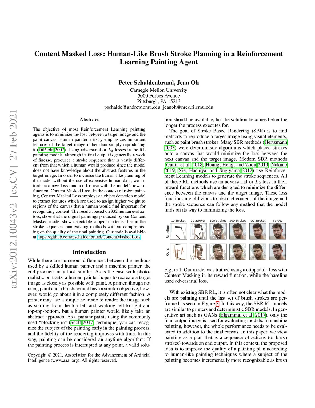 Content Masked Loss: Human-Like Brush Stroke Planning in a Reinforcement