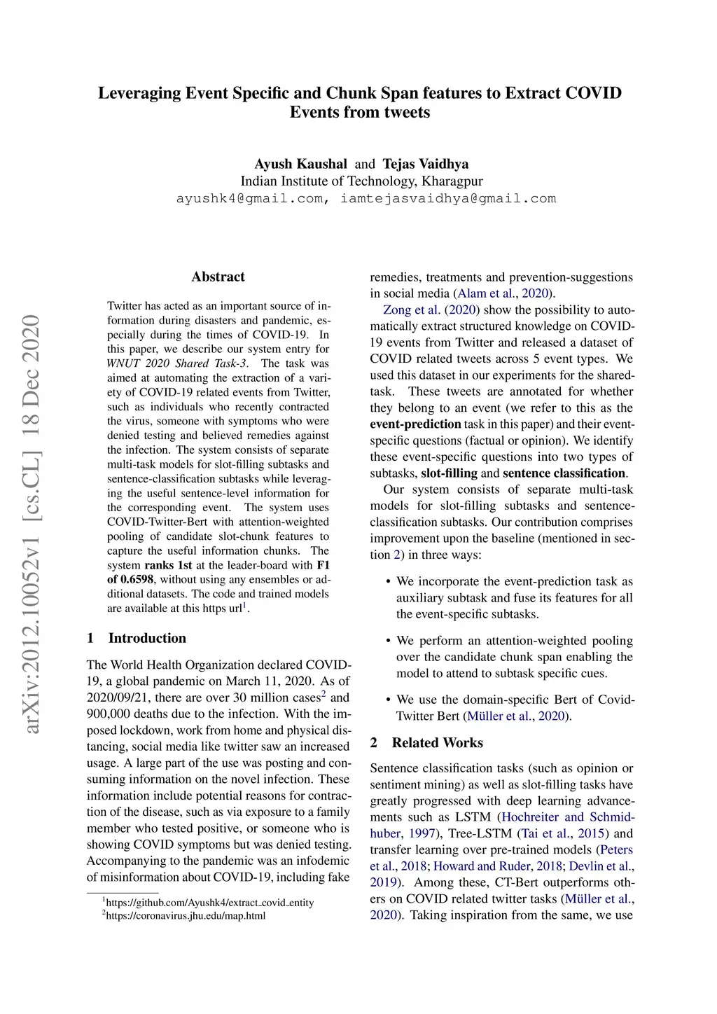 Leveraging Event Specific and Chunk Span features to Extract COVID