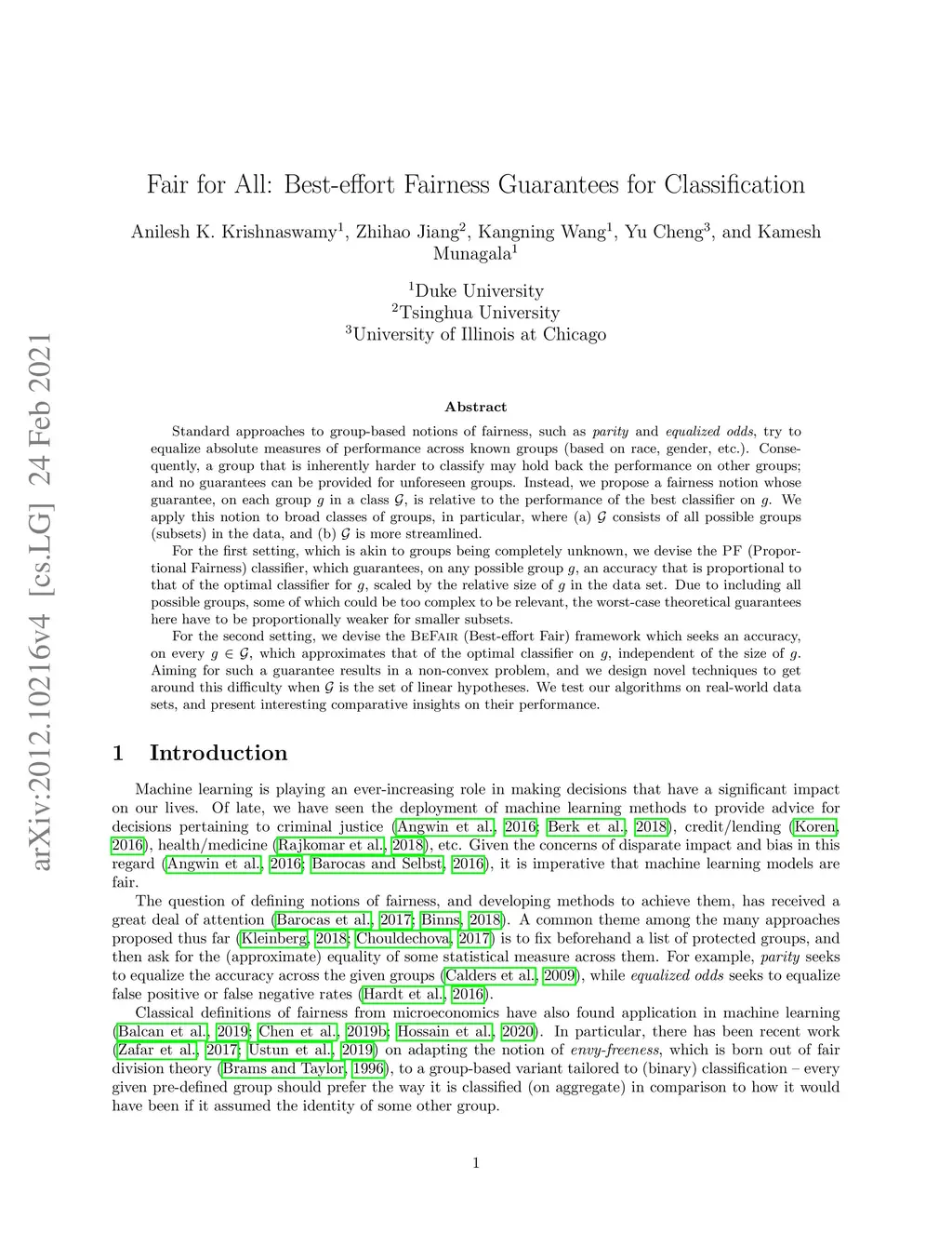 Standard approaches to group-based notions of fairness, such as \emph{parity} and \emph{equalized odds}, try to equalize absolute measures of performance across known groups (based on race, gender, etc.). Consequently, a group that is inherently harder to classify may hold back the performance on other groups; and no guarantees can be provided for unforeseen groups. Instead, we propose a fairness notion whose guarantee, on each group in a class , is relative to the performance of the best classifier on . We apply this notion to broad classes of groups, in particular, where (a) consists of all possible groups (subsets) in the data, and (b) is more streamlined. For the first setting, which is akin to groups being completely unknown, we devise the {\sc PF} (Proportional Fairness) classifier, which guarantees, on any possible group , an accuracy that is proportional to that of the optimal classifier for , scaled by the relative size of in the data set. Due to including all possible groups, some of which could be too complex to be relevant, the worst-case theoretical guarantees here have to be proportionally weaker for smaller subsets. For the second setting, we devise the {\sc BeFair} (Best-effort Fair) framework which seeks an accuracy, on every , which approximates that of the optimal classifier on , independent of the size of . Aiming for such a guarantee results in a non-convex problem, and we design novel techniques to get around this difficulty when is the set of linear hypotheses. We test our algorithms on real-world data sets, and present interesting comparative insights on their performance.
