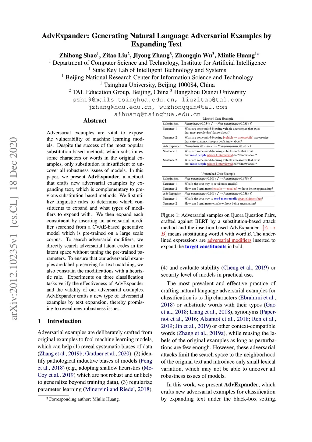 AdvExpander: Generating Natural Language Adversarial Examples by