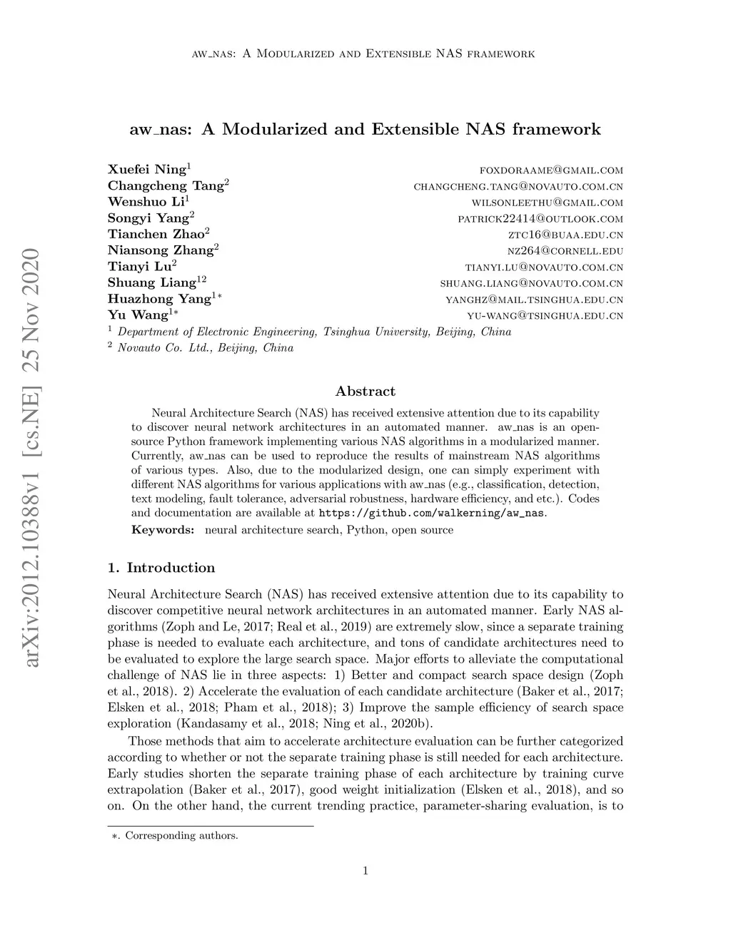 aw_nas: A Modularized and Extensible NAS framework