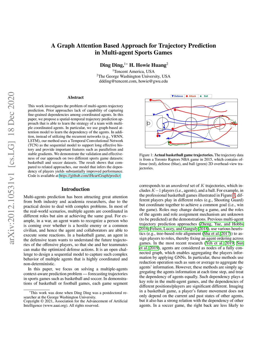This work investigates the problem of multi-agents trajectory prediction. Prior approaches lack of capability of capturing fine-grained dependencies among coordinated agents. In this paper, we propose a spatial-temporal trajectory prediction approach that is able to learn the strategy of a team with multiple coordinated agents. In particular, we use graph-based attention model to learn the dependency of the agents. In addition, instead of utilizing the recurrent networks (e.g., VRNN, LSTM), our method uses a Temporal Convolutional Network (TCN) as the sequential model to support long effective history and provide important features such as parallelism and stable gradients. We demonstrate the validation and effectiveness of our approach on two different sports game datasets: basketball and soccer datasets. The result shows that compared to related approaches, our model that infers the dependency of players yields substantially improved performance. Code is available at https://github.com/iHeartGraph/predict
