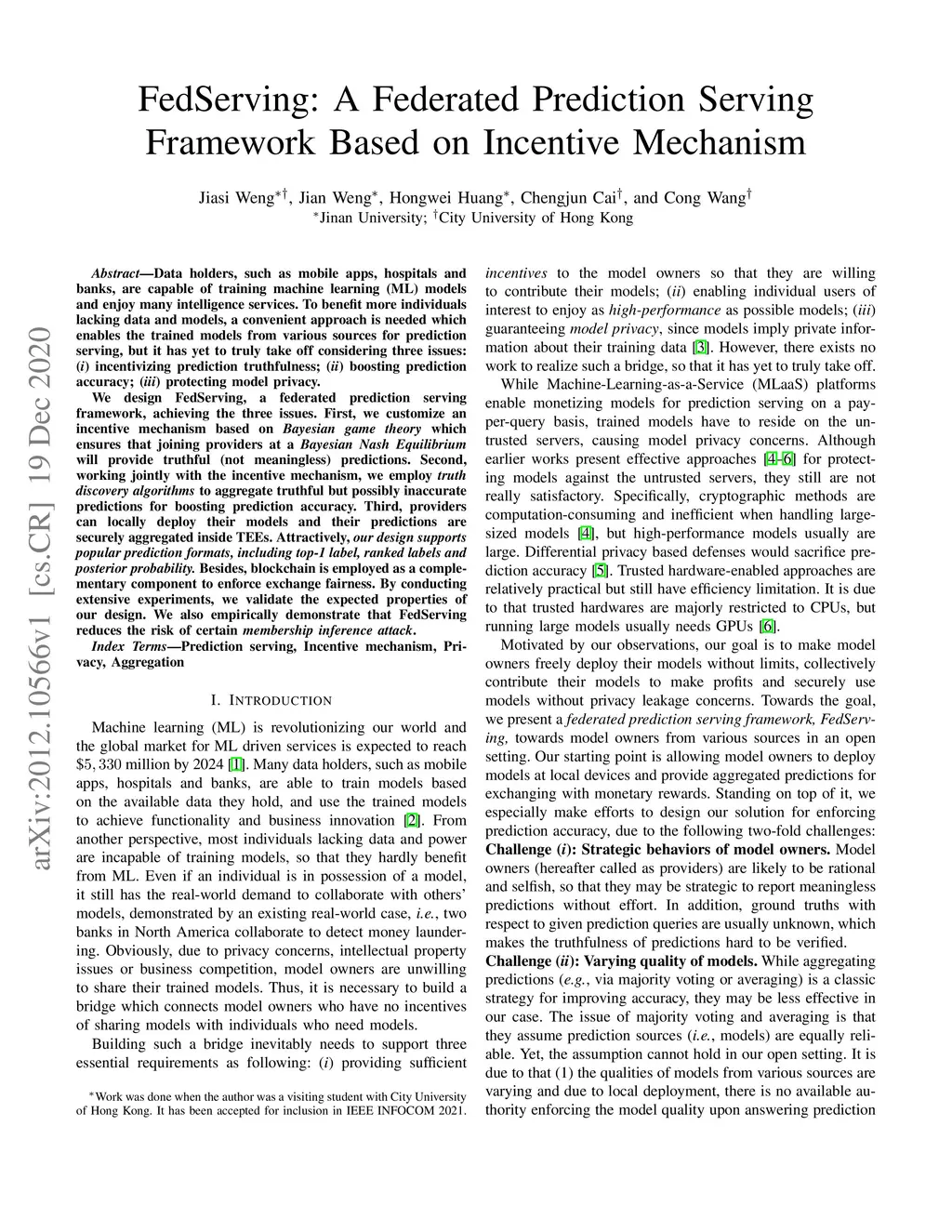FedServing: A Federated Prediction Serving Framework Based on Incentive
