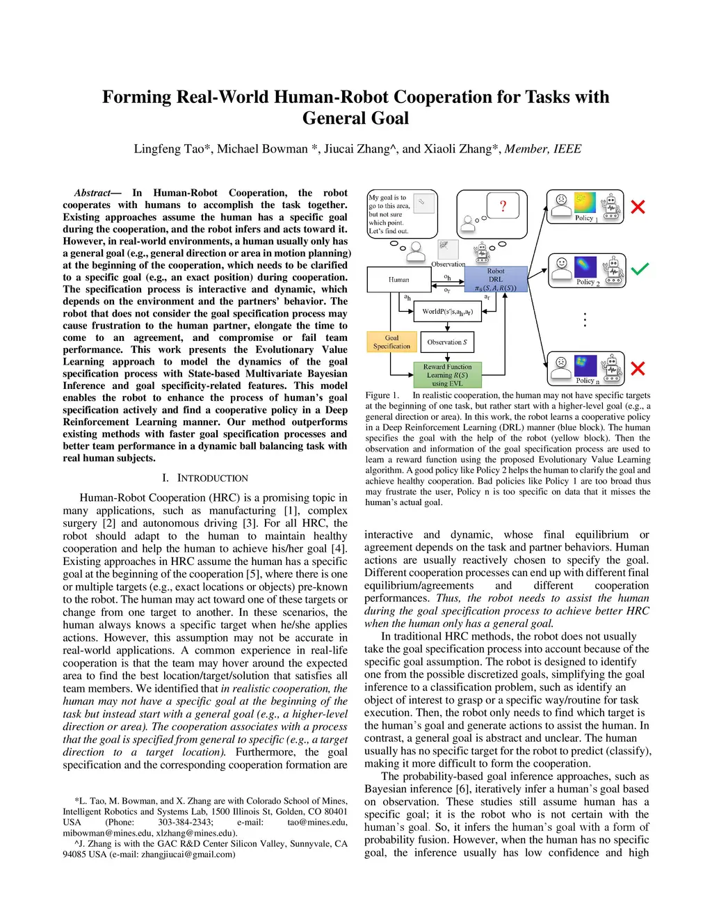 Forming Real-World Human-Robot Cooperation for Tasks With General Goal