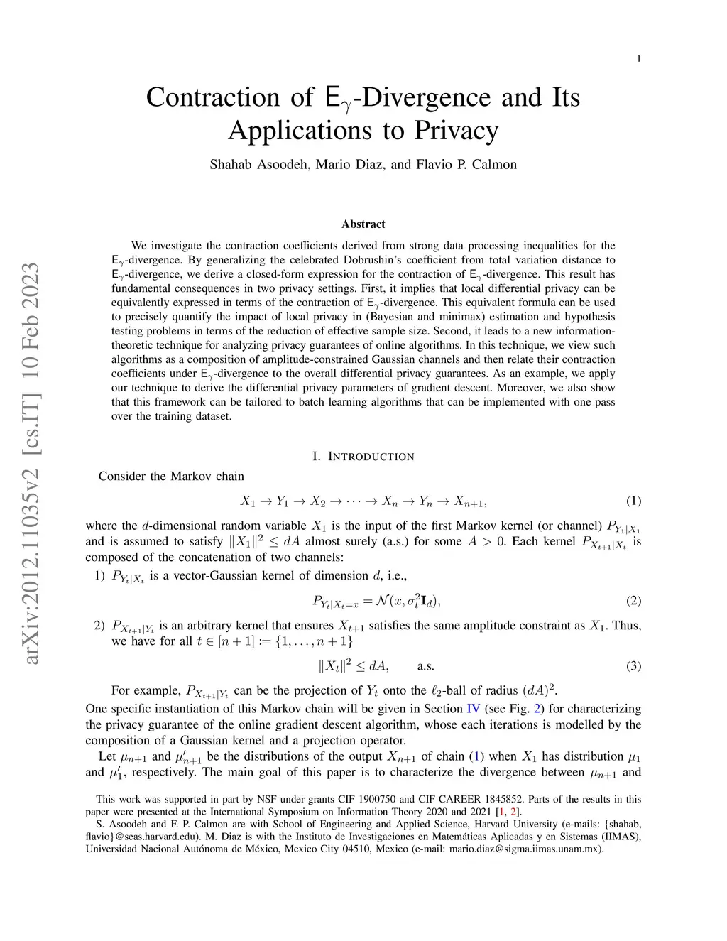 Contraction of -Divergence and Its Applications to Privacy