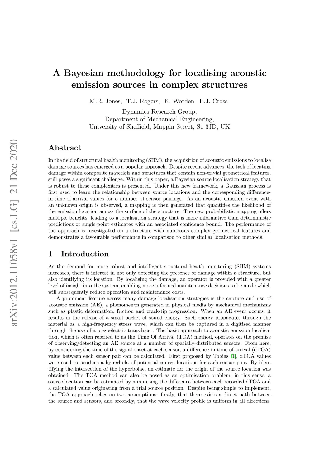 A Bayesian methodology for localising acoustic emission sources in