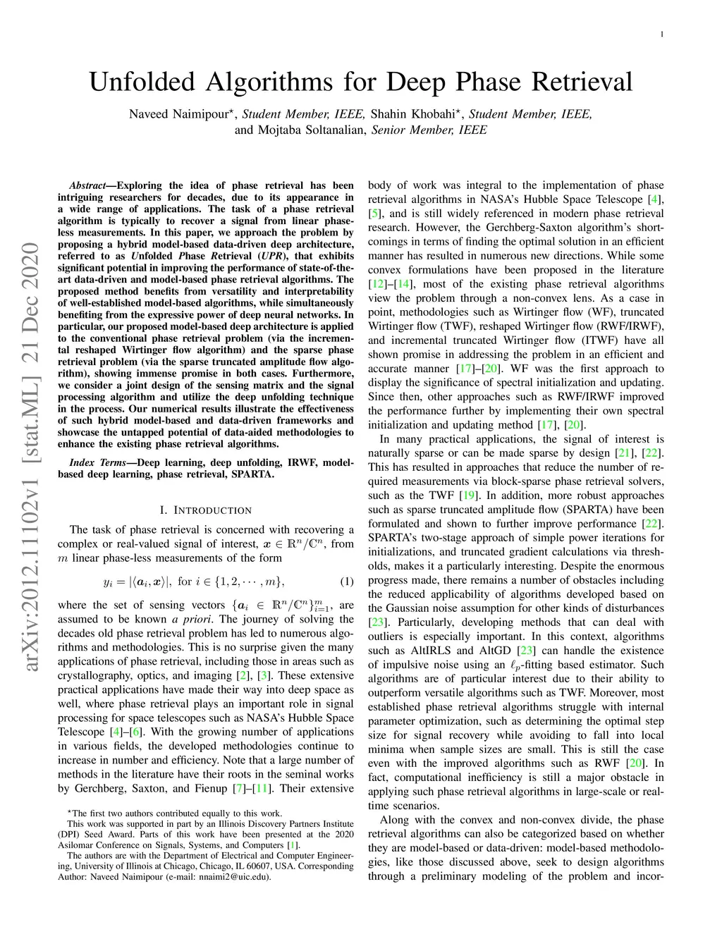 Exploring the idea of phase retrieval has been intriguing researchers for decades, due to its appearance in a wide range of applications. The task of a phase retrieval algorithm is typically to recover a signal from linear phaseless measurements. In this paper, we approach the problem by proposing a hybrid model-based data-driven deep architecture, referred to as Unfolded Phase Retrieval (UPR), that exhibits significant potential in improving the performance of state-of-the art data-driven and model-based phase retrieval algorithms. The proposed method benefits from versatility and interpretability of well-established model-based algorithms, while simultaneously benefiting from the expressive power of deep neural networks. In particular, our proposed model-based deep architecture is applied to the conventional phase retrieval problem (via the incremental reshaped Wirtinger flow algorithm) and the sparse phase retrieval problem (via the sparse truncated amplitude flow algorithm), showing immense promise in both cases. Furthermore, we consider a joint design of the sensing matrix and the signal processing algorithm and utilize the deep unfolding technique in the process. Our numerical results illustrate the effectiveness of such hybrid model-based and data-driven frameworks and showcase the untapped potential of data-aided methodologies to enhance the existing phase retrieval algorithms.