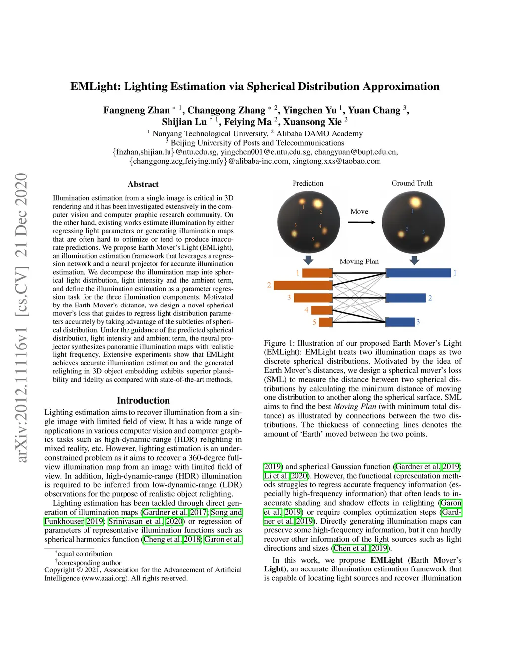 EMLight: Lighting Estimation via Spherical Distribution Approximation