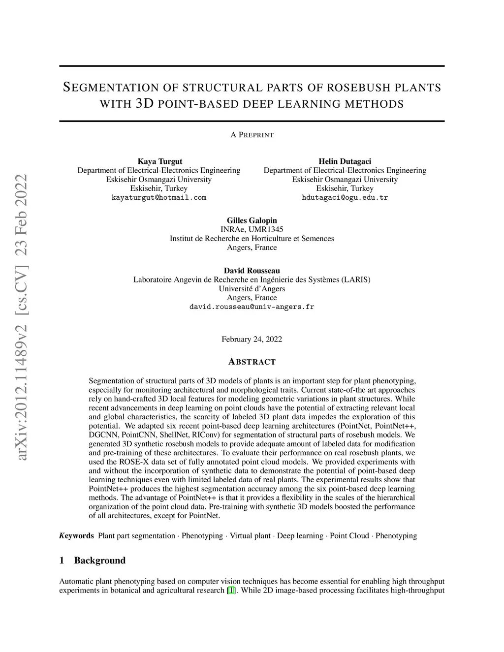 Segmentation of structural parts of rosebush plants with 3D point-based