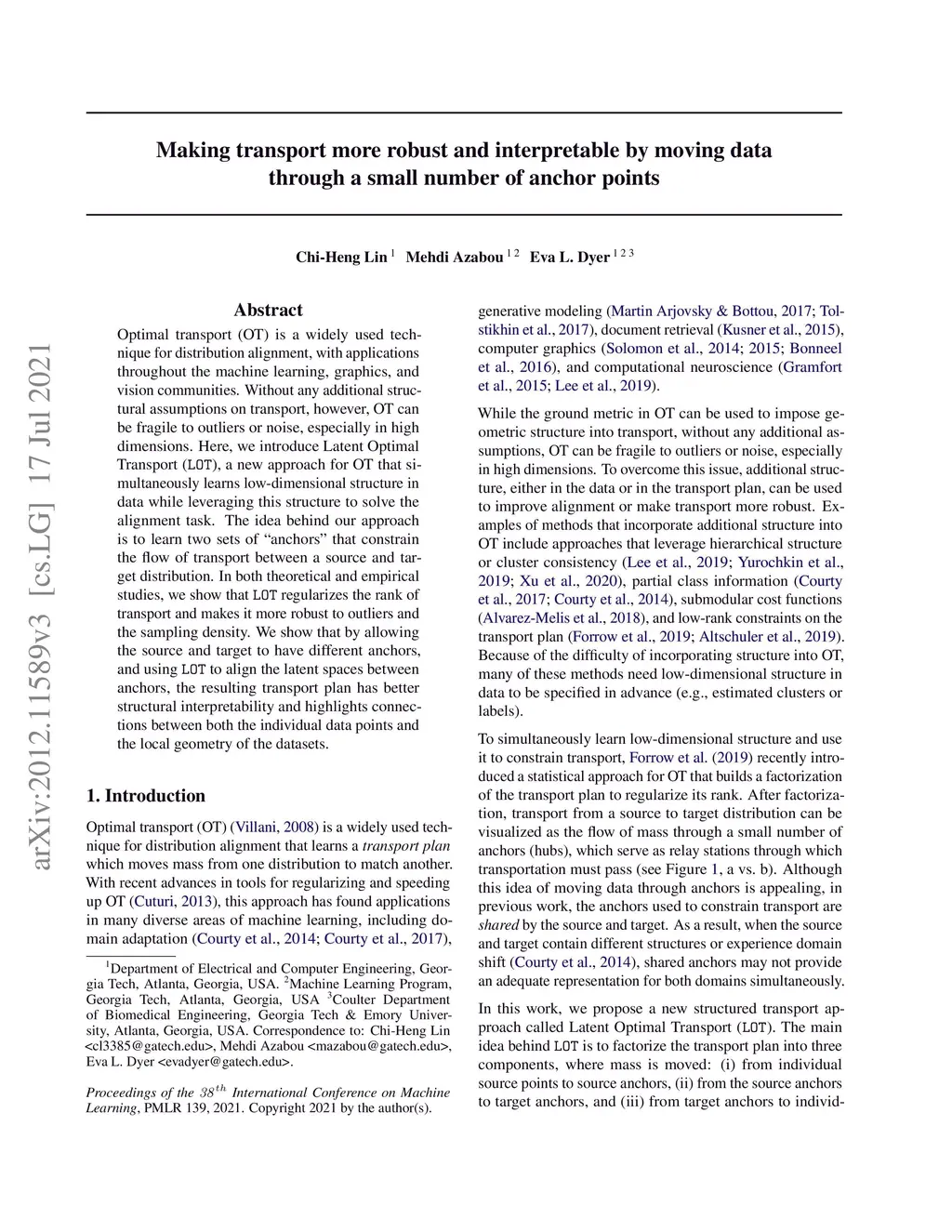 Making transport more robust and interpretable by moving data through a