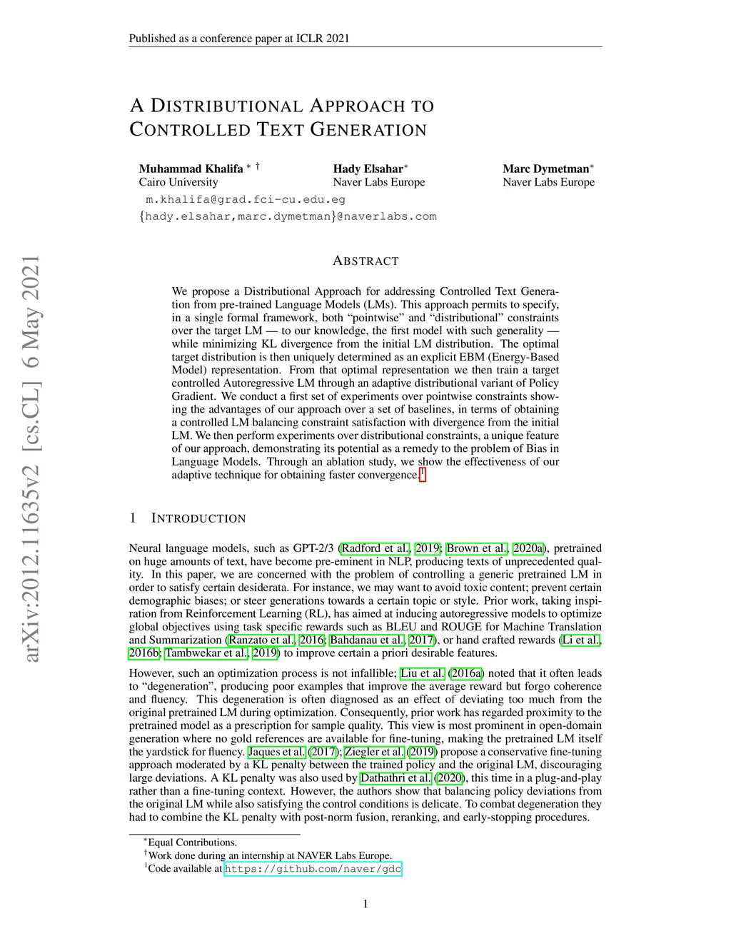 A Distributional Approach to Controlled Text Generation