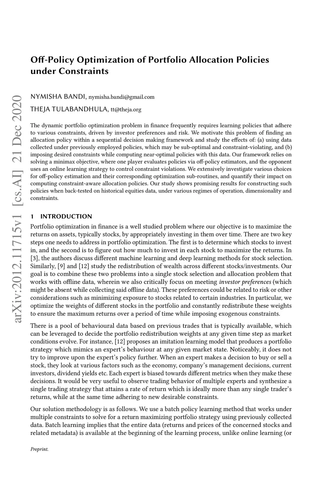 Off-Policy Optimization of Portfolio Allocation Policies under
