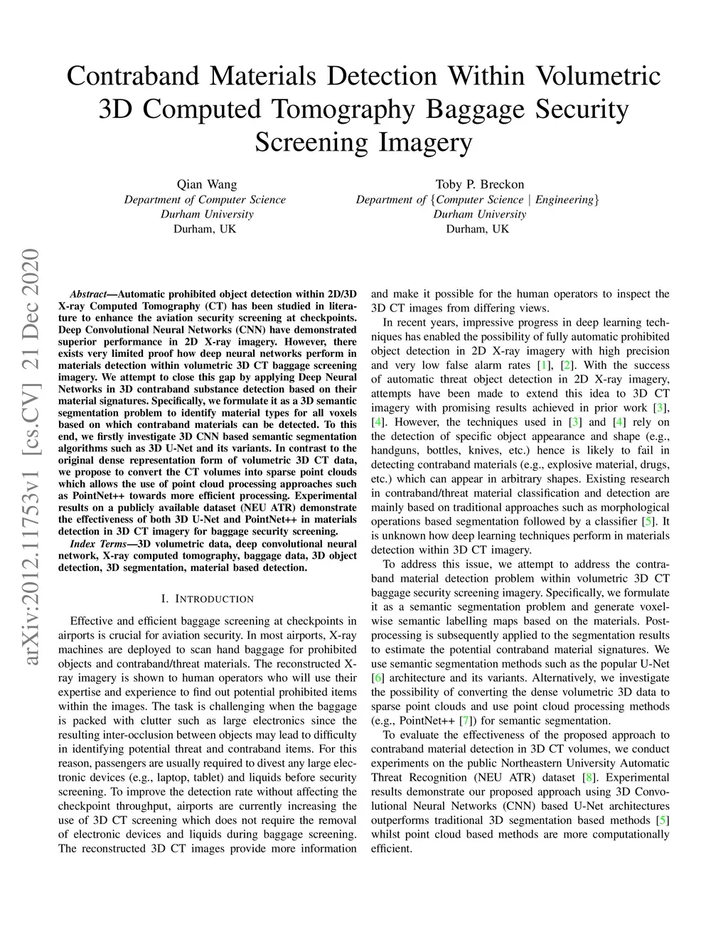 Contraband Materials Detection Within Volumetric 3D Computed Tomography