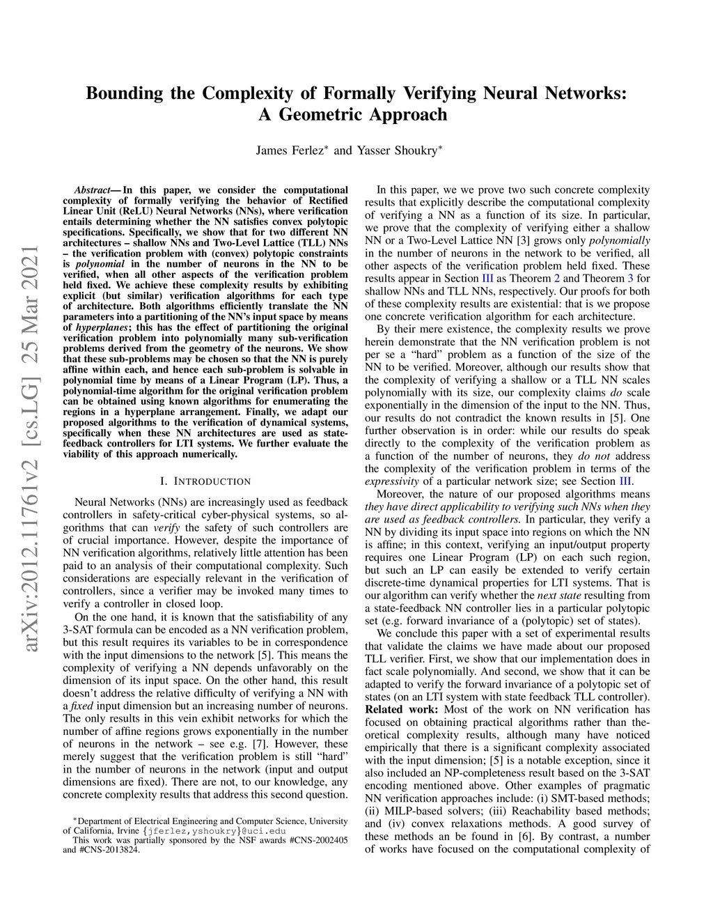 Bounding the Complexity of Formally Verifying Neural Networks: A
