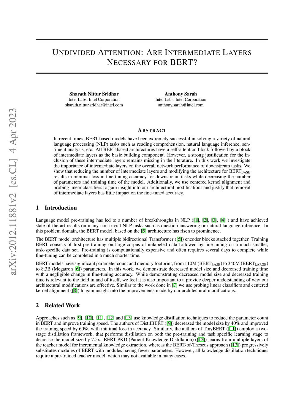 Undivided Attention: Are Intermediate Layers Necessary for BERT?