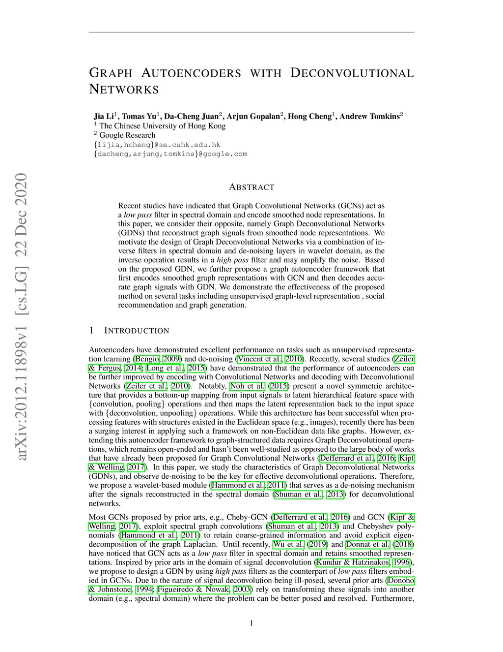 Recent studies have indicated that Graph Convolutional Networks (GCNs) act as a \emph{low pass} filter in spectral domain and encode smoothed node representations. In this paper, we consider their opposite, namely Graph Deconvolutional Networks (GDNs) that reconstruct graph signals from smoothed node representations. We motivate the design of Graph Deconvolutional Networks via a combination of inverse filters in spectral domain and de-noising layers in wavelet domain, as the inverse operation results in a \emph{high pass} filter and may amplify the noise. Based on the proposed GDN, we further propose a graph autoencoder framework that first encodes smoothed graph representations with GCN and then decodes accurate graph signals with GDN. We demonstrate the effectiveness of the proposed method on several tasks including unsupervised graph-level representation , social recommendation and graph generation