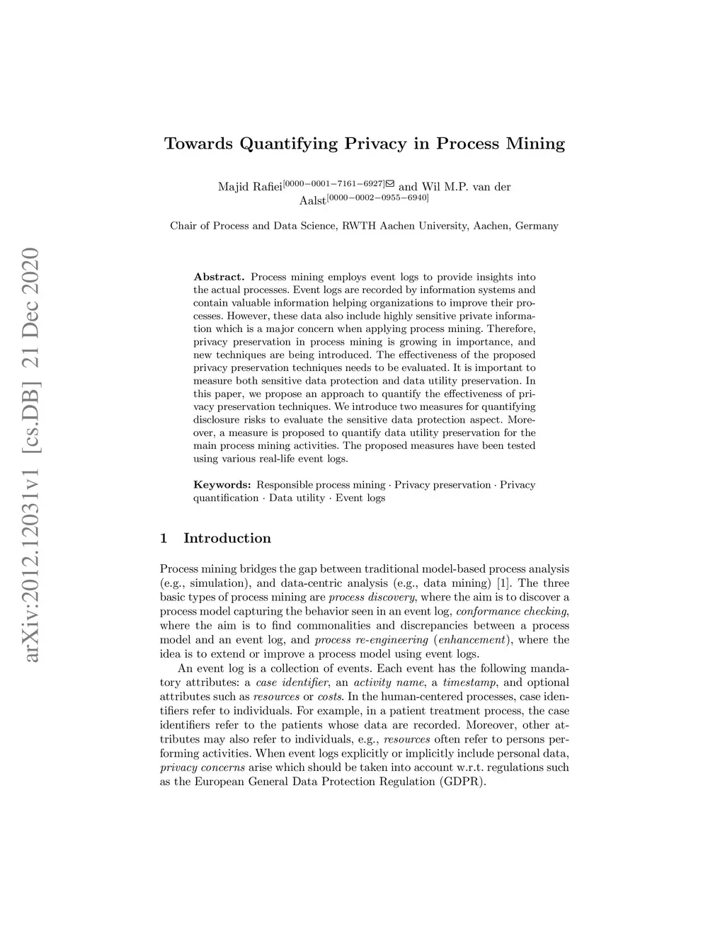 Towards Quantifying Privacy in Process Mining