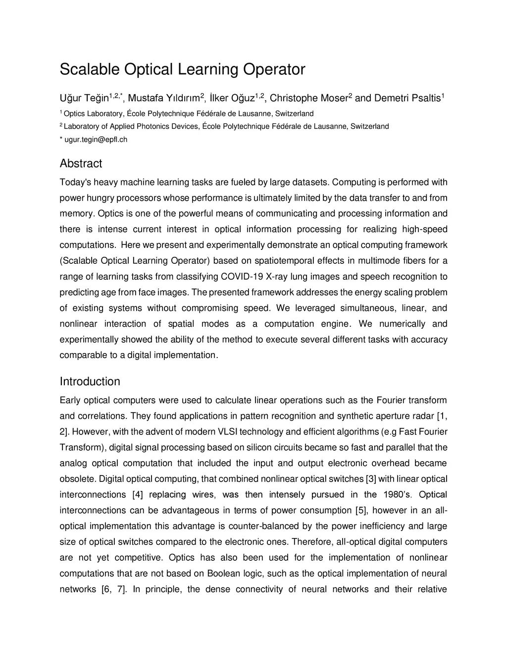 Scalable Optical Learning Operator