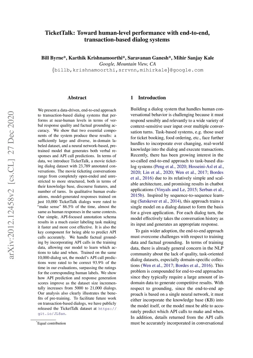 TicketTalk: Toward human-level performance with end-to-end,