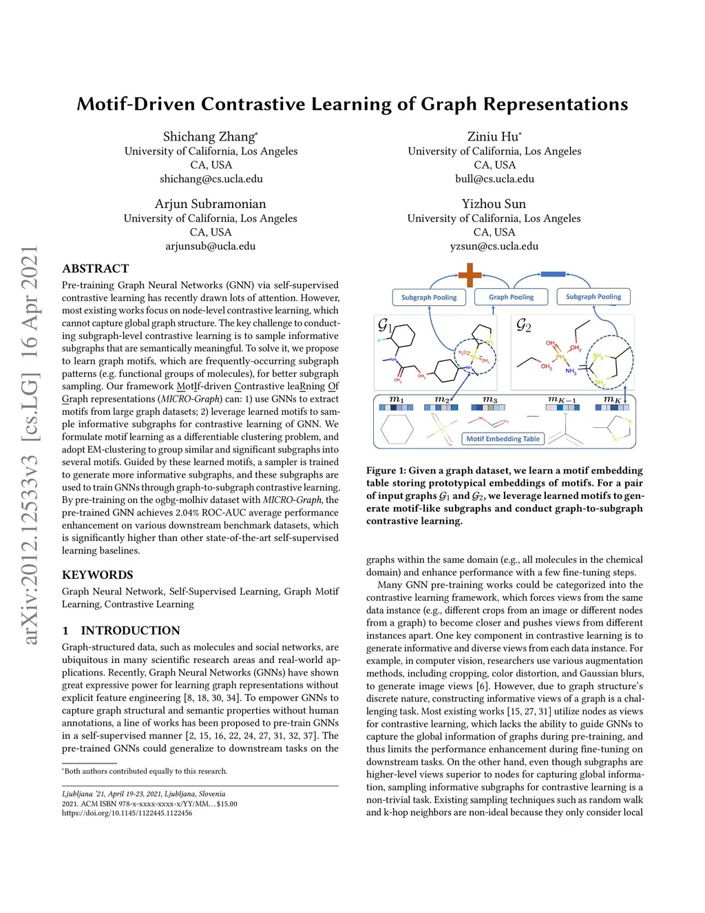 Motif-Driven Contrastive Learning of Graph Representations