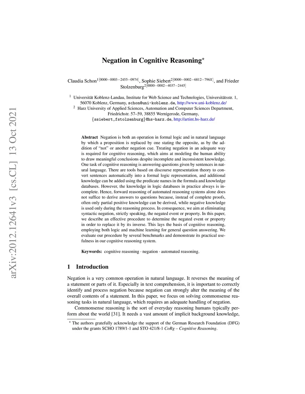 Negation in Cognitive Reasoning