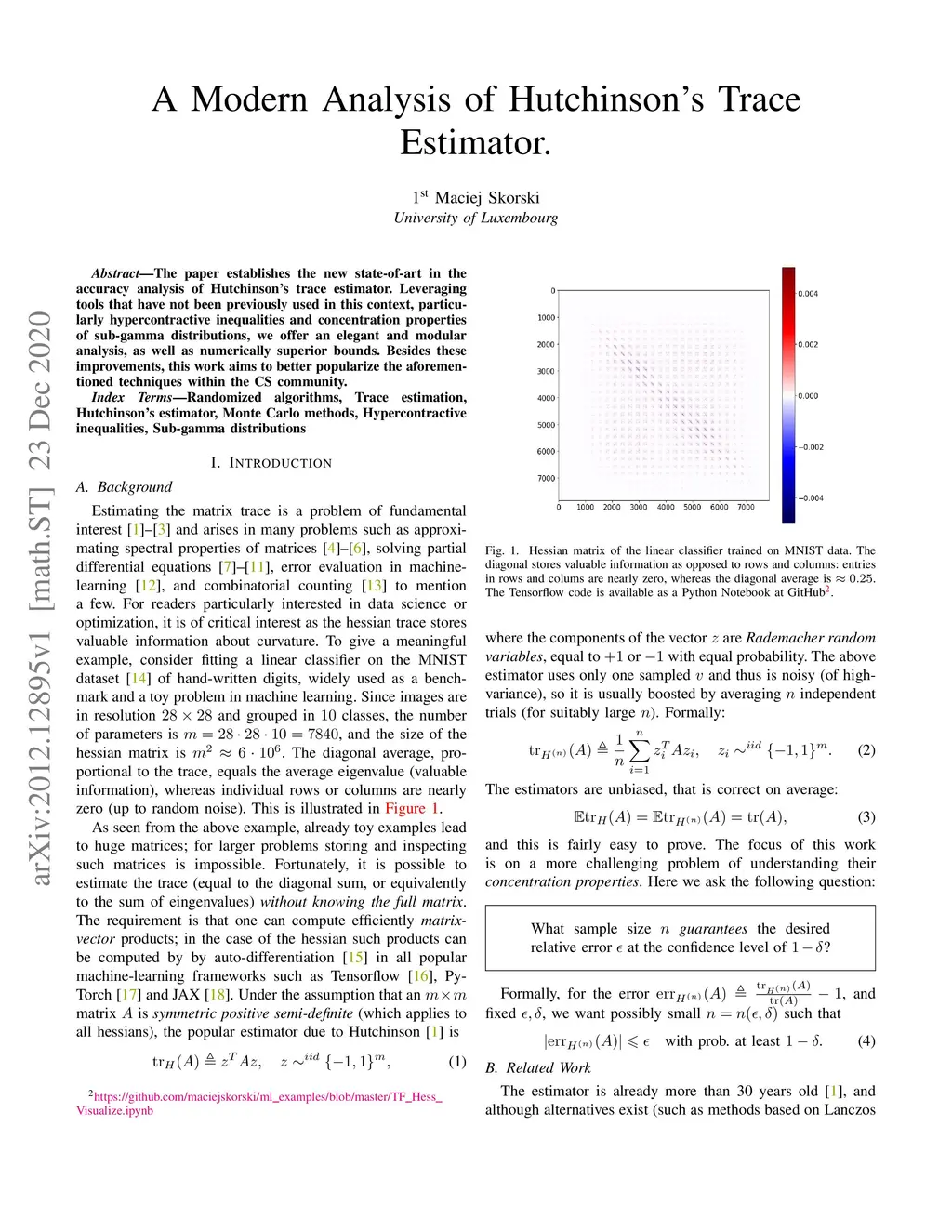 A Modern Analysis of Hutchinson's Trace Estimator