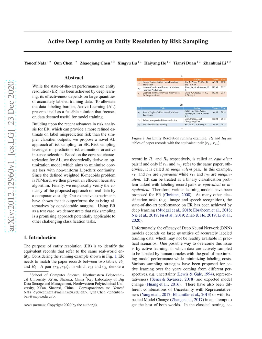 Active Deep Learning on Entity Resolution by Risk Sampling
