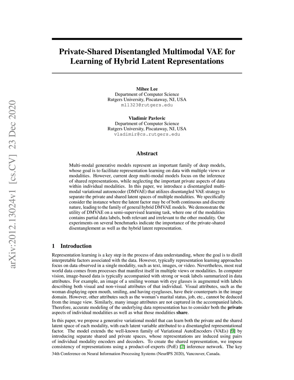 Private-Shared Disentangled Multimodal VAE for Learning of Hybrid Latent