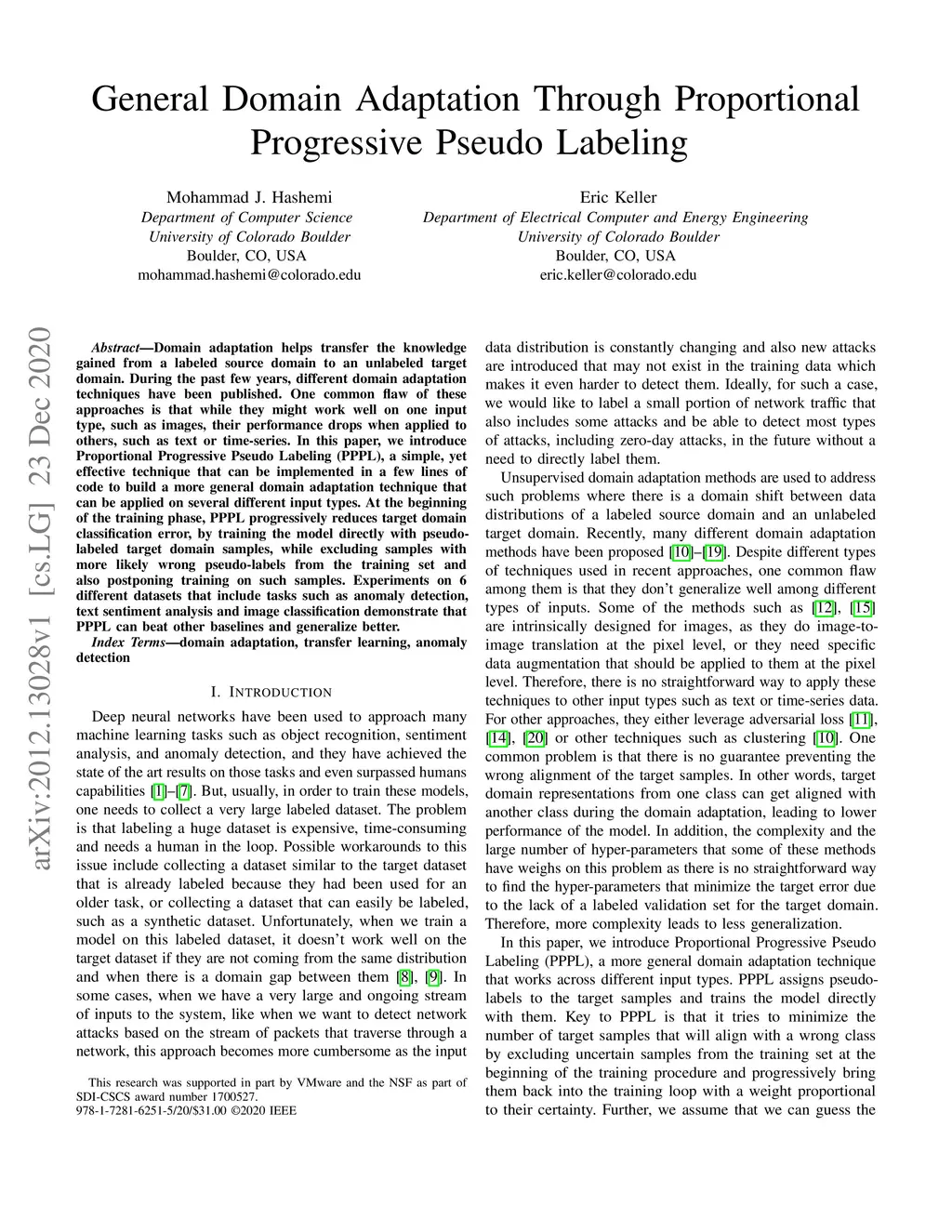 Domain adaptation helps transfer the knowledge gained from a labeled source domain to an unlabeled target domain. During the past few years, different domain adaptation techniques have been published. One common flaw of these approaches is that while they might work well on one input type, such as images, their performance drops when applied to others, such as text or time-series. In this paper, we introduce Proportional Progressive Pseudo Labeling (PPPL), a simple, yet effective technique that can be implemented in a few lines of code to build a more general domain adaptation technique that can be applied on several different input types. At the beginning of the training phase, PPPL progressively reduces target domain classification error, by training the model directly with pseudo-labeled target domain samples, while excluding samples with more likely wrong pseudo-labels from the training set and also postponing training on such samples. Experiments on 6 different datasets that include tasks such as anomaly detection, text sentiment analysis and image classification demonstrate that PPPL can beat other baselines and generalize better.