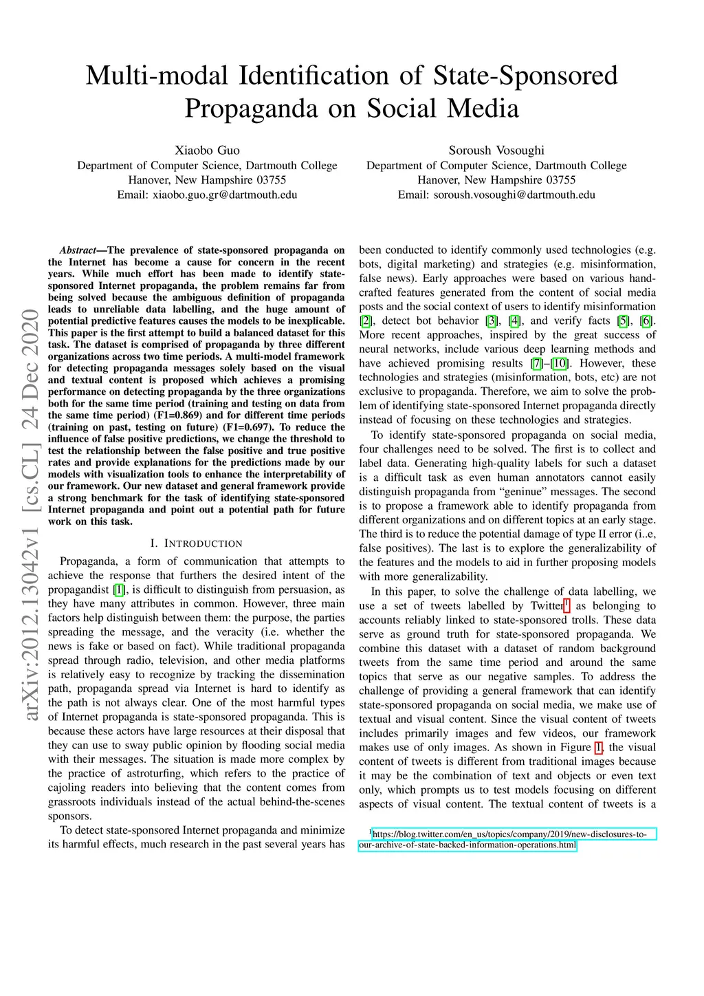 Multi-modal Identification of State-Sponsored Propaganda on Social Media