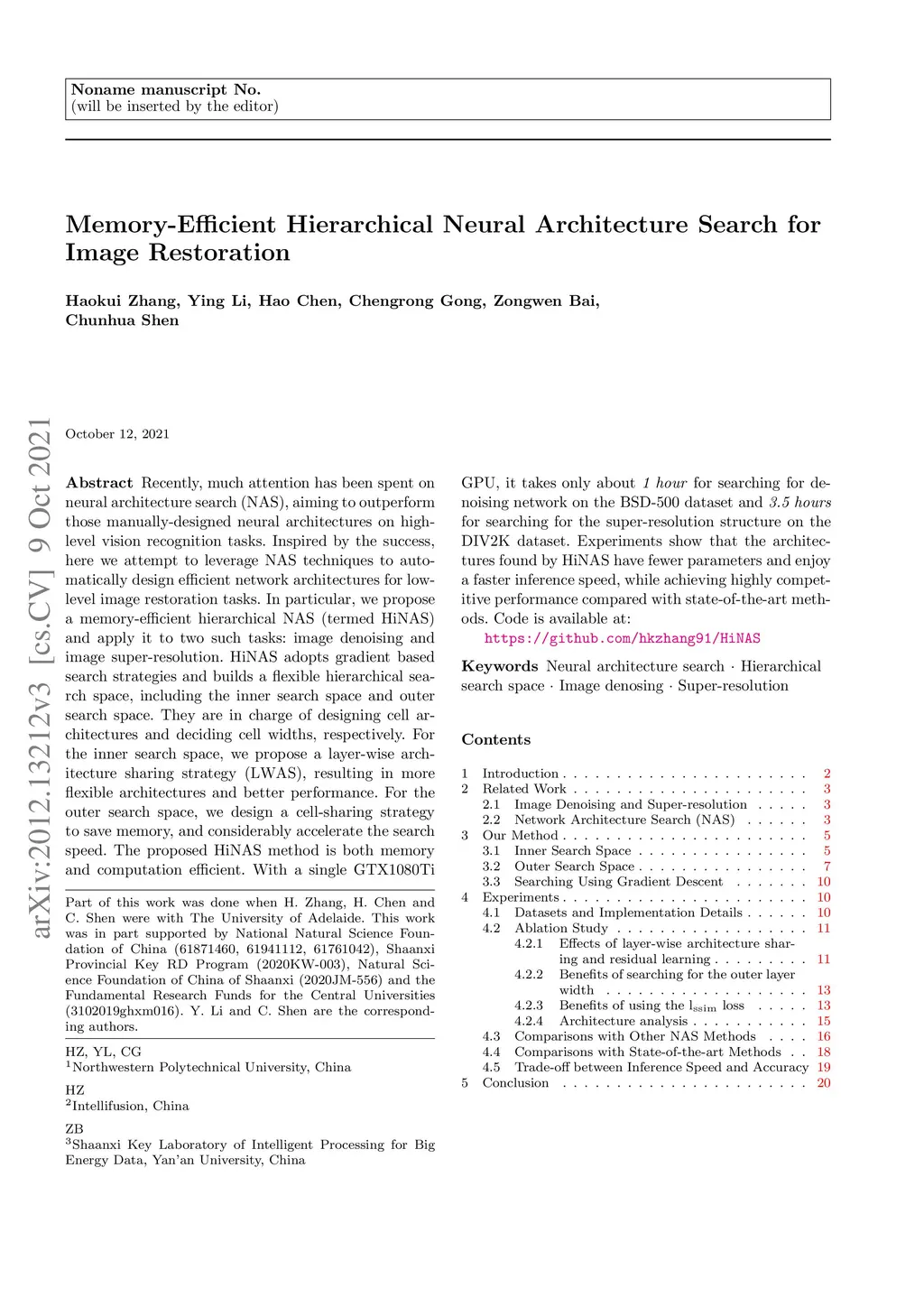 Memory-Efficient Hierarchical Neural Architecture Search for Image