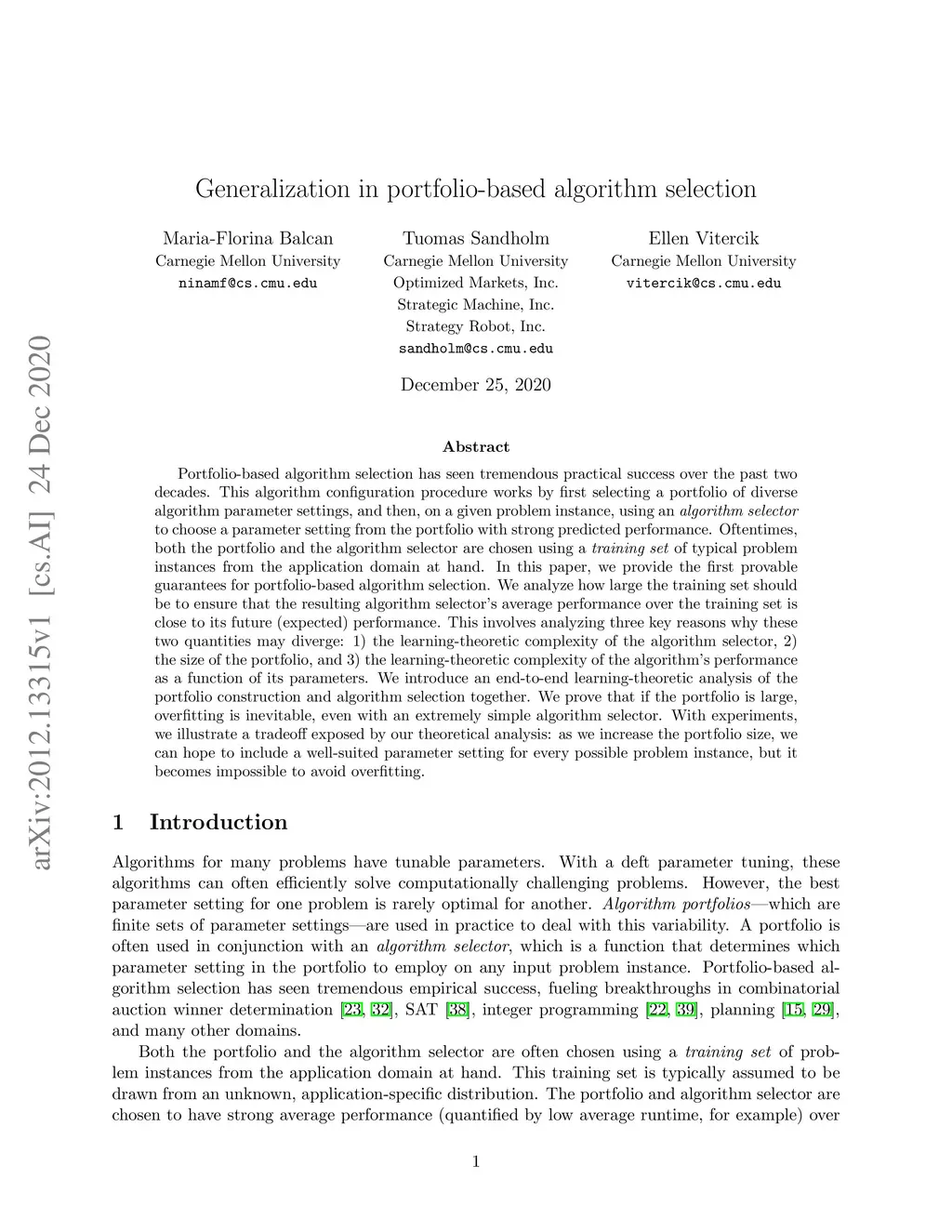 Generalization in portfolio-based algorithm selection