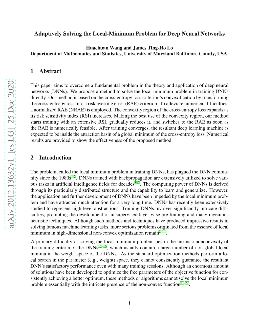 This paper aims to overcome a fundamental problem in the theory and application of deep neural networks (DNNs). We propose a method to solve the local minimum problem in training DNNs directly. Our method is based on the cross-entropy loss criterion's convexification by transforming the cross-entropy loss into a risk averting error (RAE) criterion. To alleviate numerical difficulties, a normalized RAE (NRAE) is employed. The convexity region of the cross-entropy loss expands as its risk sensitivity index (RSI) increases. Making the best use of the convexity region, our method starts training with an extensive RSI, gradually reduces it, and switches to the RAE as soon as the RAE is numerically feasible. After training converges, the resultant deep learning machine is expected to be inside the attraction basin of a global minimum of the cross-entropy loss. Numerical results are provided to show the effectiveness of the proposed method.