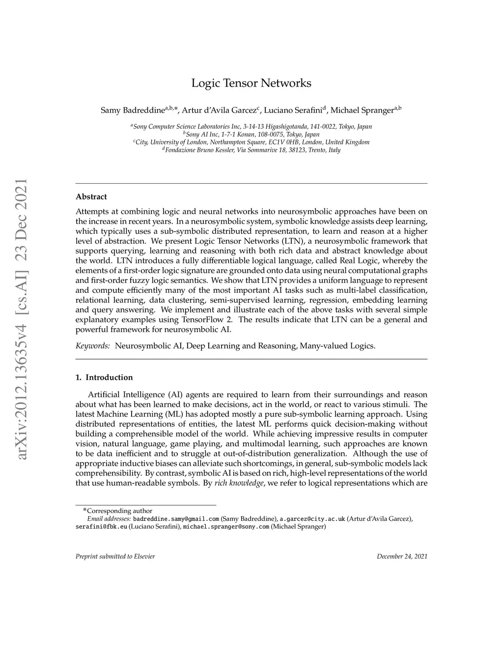 Artificial Intelligence agents are required to learn from their surroundings and to reason about the knowledge that has been learned in order to make decisions. While state-of-the-art learning from data typically uses sub-symbolic distributed representations, reasoning is normally useful at a higher level of abstraction with the use of a first-order logic language for knowledge representation. As a result, attempts at combining symbolic AI and neural computation into neural-symbolic systems have been on the increase. In this paper, we present Logic Tensor Networks (LTN), a neurosymbolic formalism and computational model that supports learning and reasoning through the introduction of a many-valued, end-to-end differentiable first-order logic called Real Logic as a representation language for deep learning. We show that LTN provides a uniform language for the specification and the computation of several AI tasks such as data clustering, multi-label classification, relational learning, query answering, semi-supervised learning, regression and embedding learning. We implement and illustrate each of the above tasks with a number of simple explanatory examples using TensorFlow 2. Keywords: Neurosymbolic AI, Deep Learning and Reasoning, Many-valued Logic.