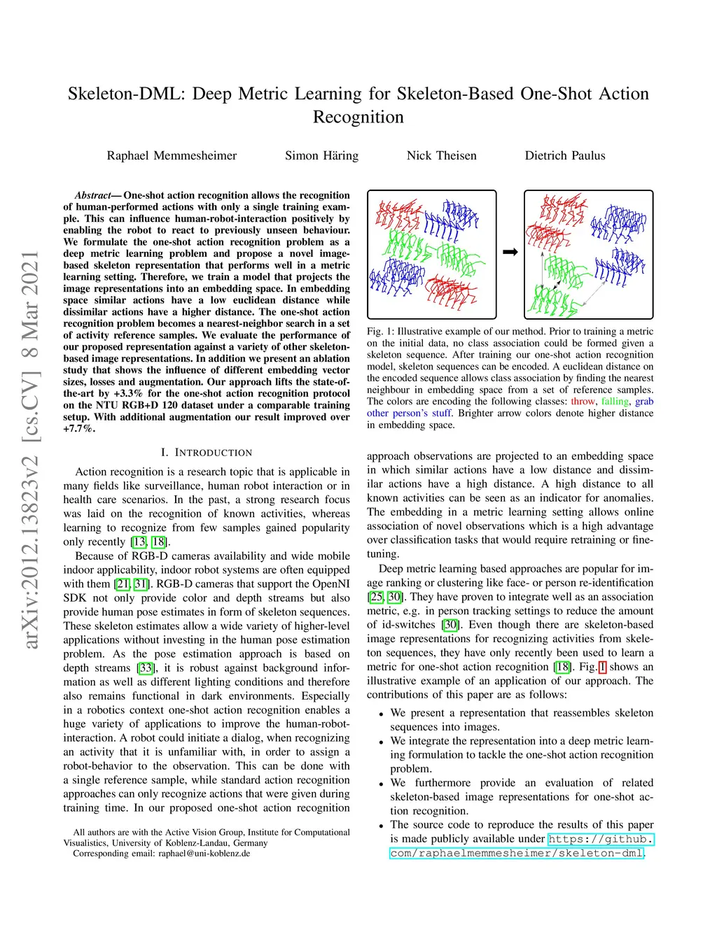 Skeleton-DML: Deep Metric Learning for Skeleton-Based One-Shot Action