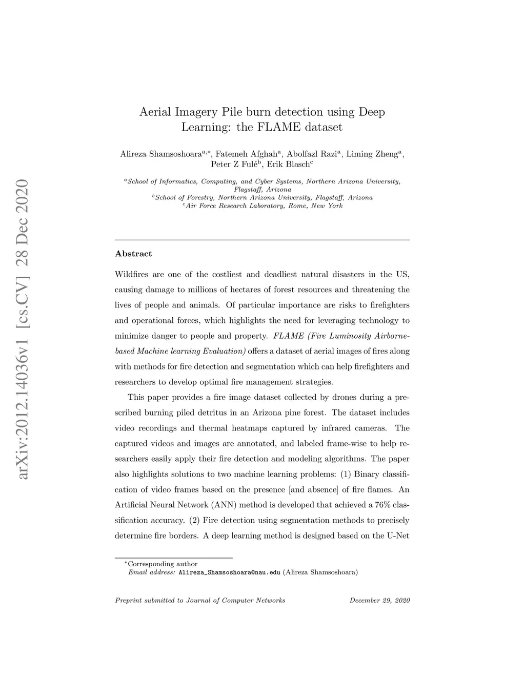 Aerial Imagery Pile burn detection using Deep Learning: the FLAME