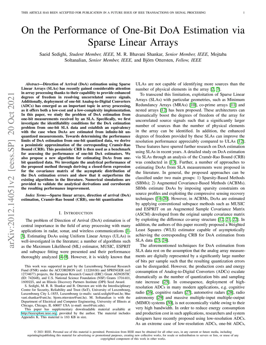Direction of Arrival (DoA) estimation using Sparse Linear Arrays (SLAs) has recently gained considerable attention in array processing thanks to their capability to provide enhanced degrees of freedom in resolving uncorrelated source signals. Additionally, deployment of one-bit Analog-to-Digital Converters (ADCs) has emerged as an important topic in array processing, as it offers both a low-cost and a low-complexity implementation. In this paper, we study the problem of DoA estimation from one-bit measurements received by an SLA. Specifically, we first investigate the identifiability conditions for the DoA estimation problem from one-bit SLA data and establish an equivalency with the case when DoAs are estimated from infinite-bit unquantized measurements. Towards determining the performance limits of DoA estimation from one-bit quantized data, we derive a pessimistic approximation of the corresponding Cram\'{e}r-Rao Bound (CRB). This pessimistic CRB is then used as a benchmark for assessing the performance of one-bit DoA estimators. We also propose a new algorithm for estimating DoAs from one-bit quantized data. We investigate the analytical performance of the proposed method through deriving a closed-form expression for the covariance matrix of the asymptotic distribution of the DoA estimation errors and show that it outperforms the existing algorithms in the literature. Numerical simulations are provided to validate the analytical derivations and corroborate the resulting performance improvement.