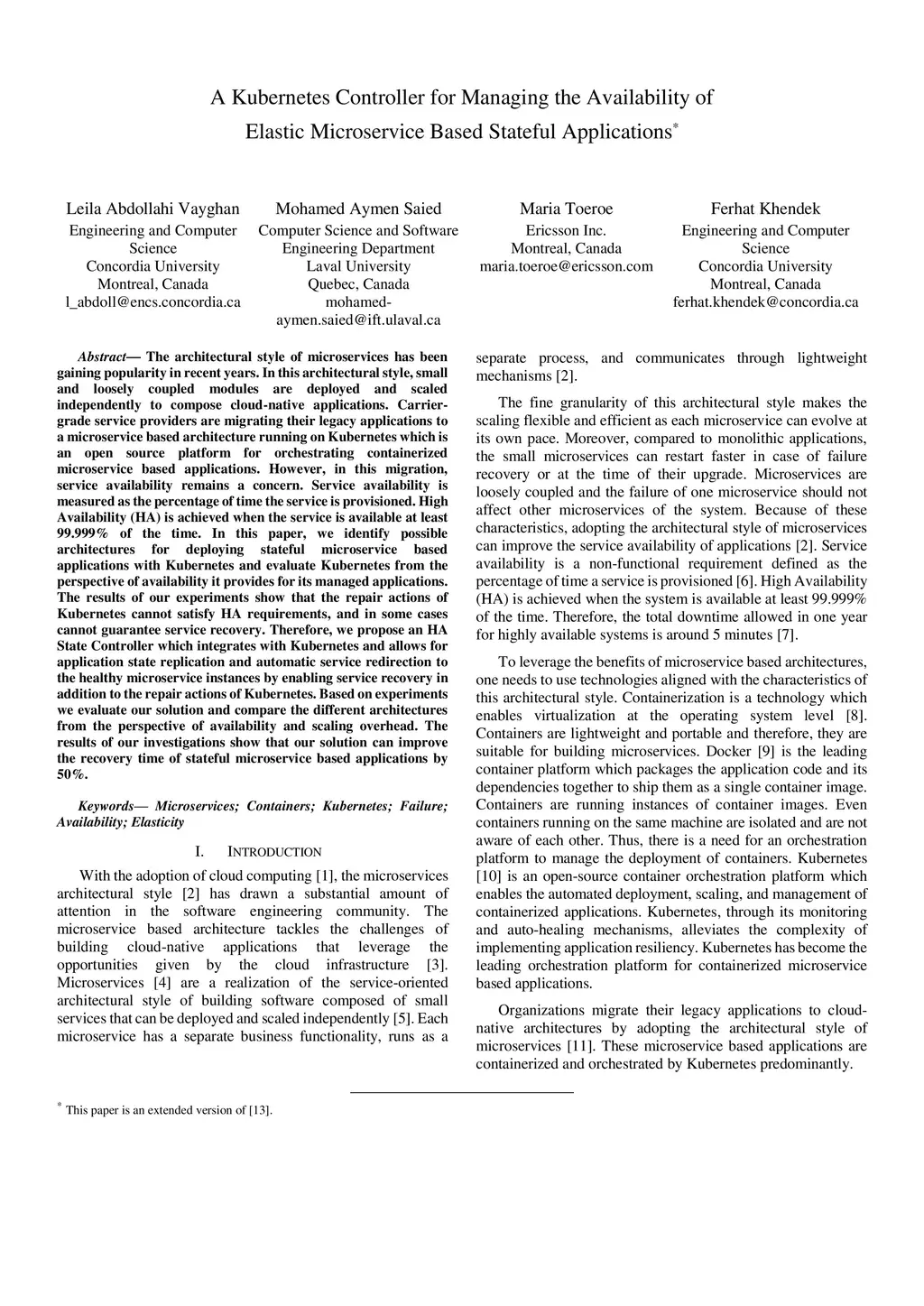 A Kubernetes Controller for Managing the Availability of Elastic